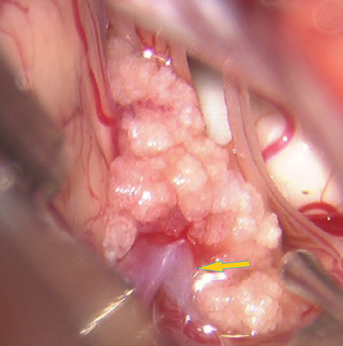 手術で顔面神経と脳血管を離すと、症状は消失しました。