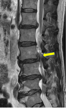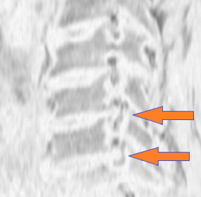 MRIで新たな骨折がみられ、第1腰椎のように骨変形が起こると考えられました。